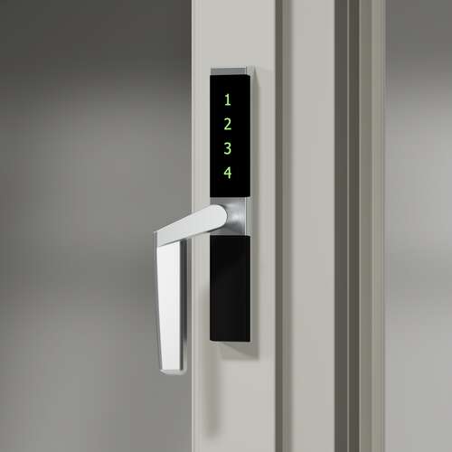 elektromekaniskt handtag som öppnas med kod, och som är utvecklat för